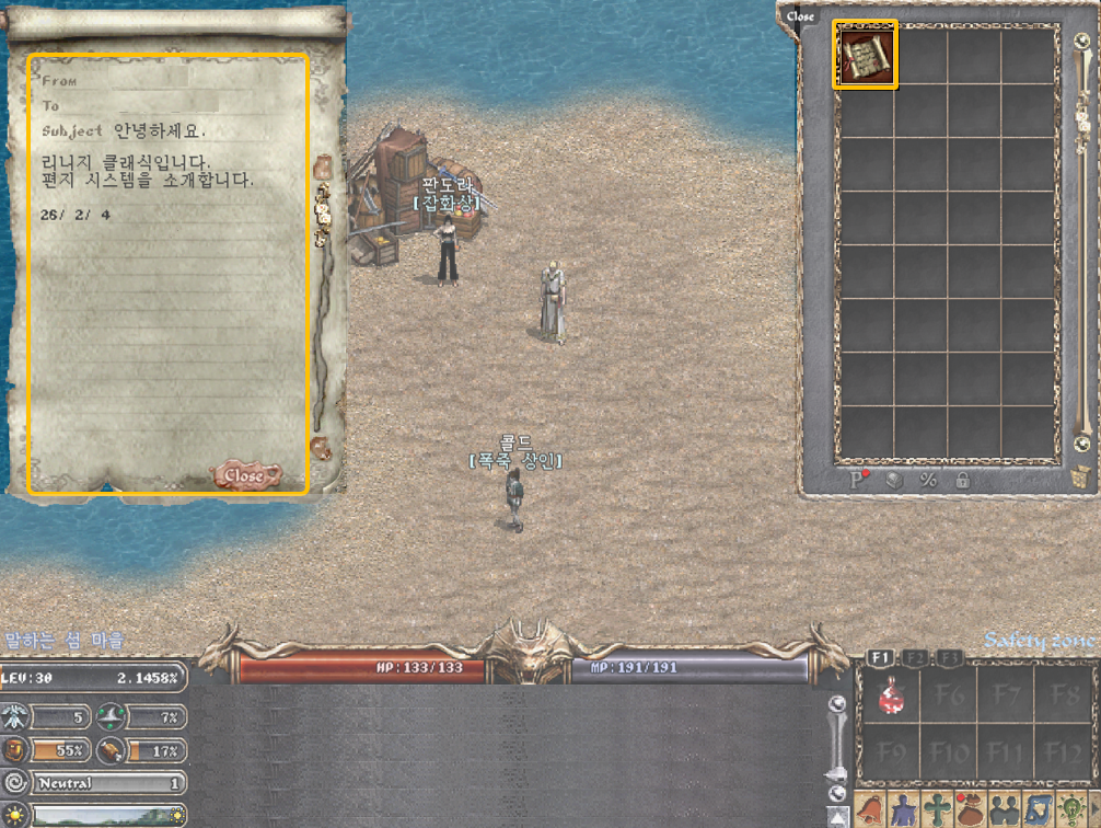 Bạn có thể gửi thư dạng văn bản cho nhân vật khác hoặc cho thành viên trong cùng bang hội.